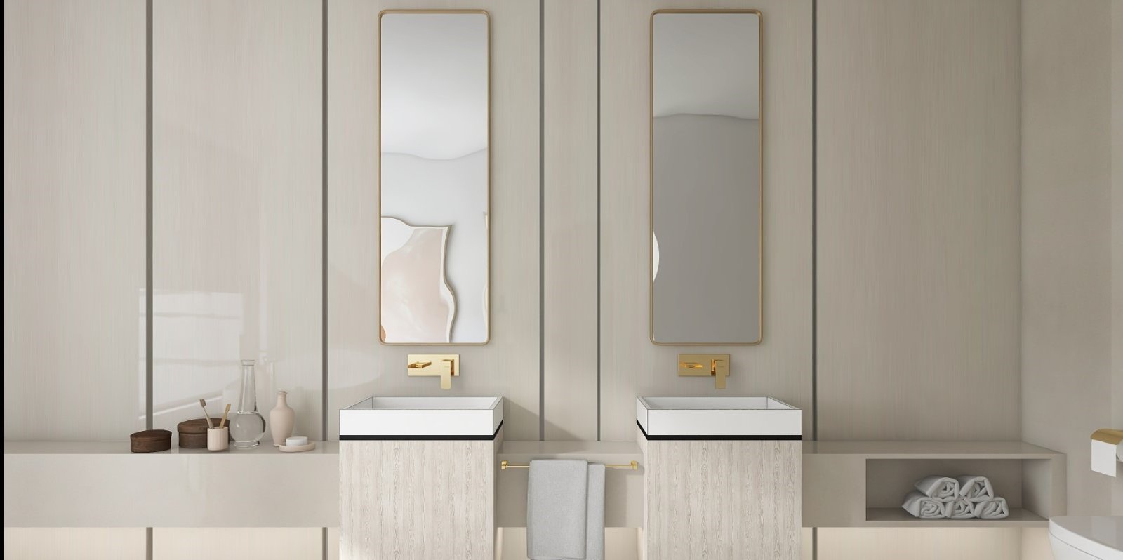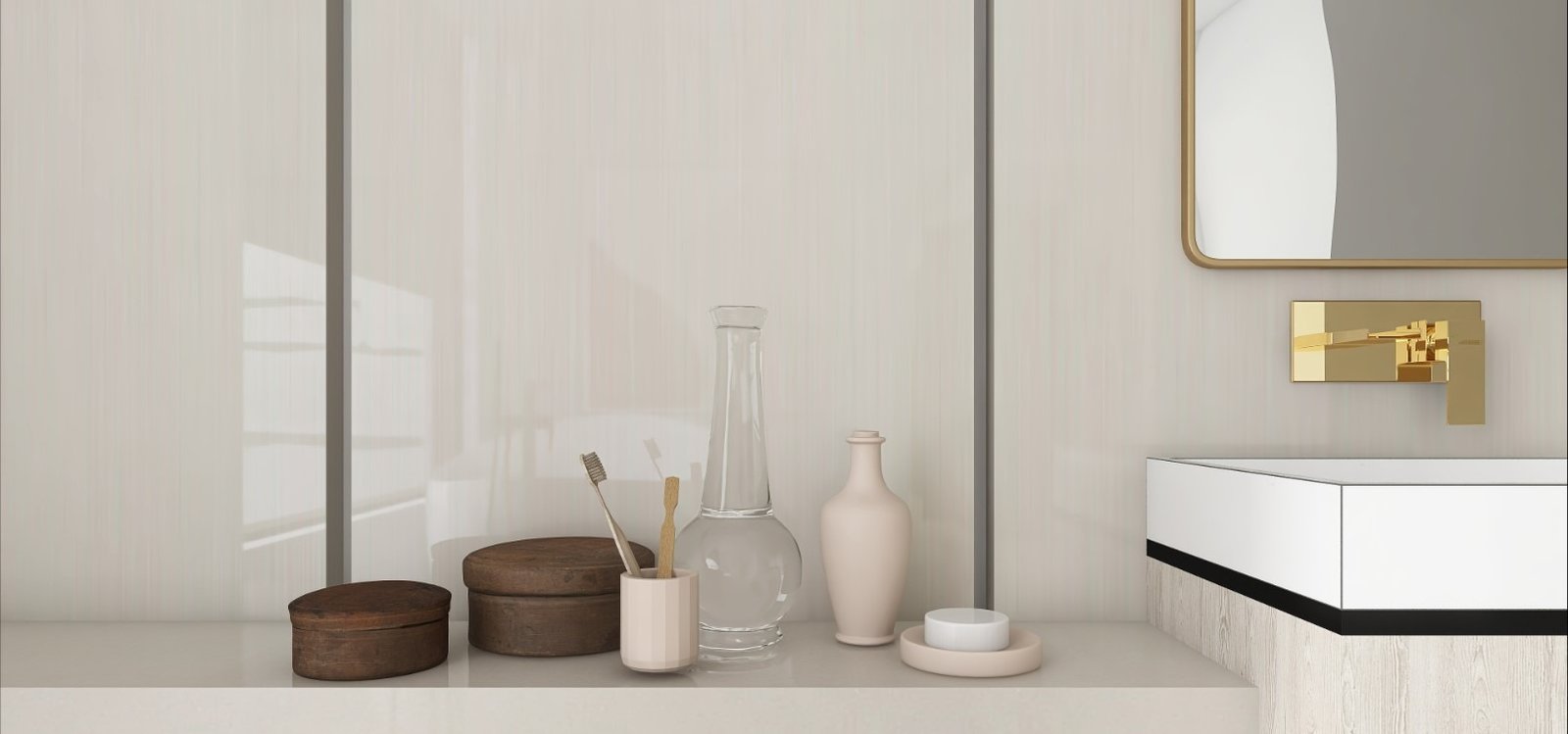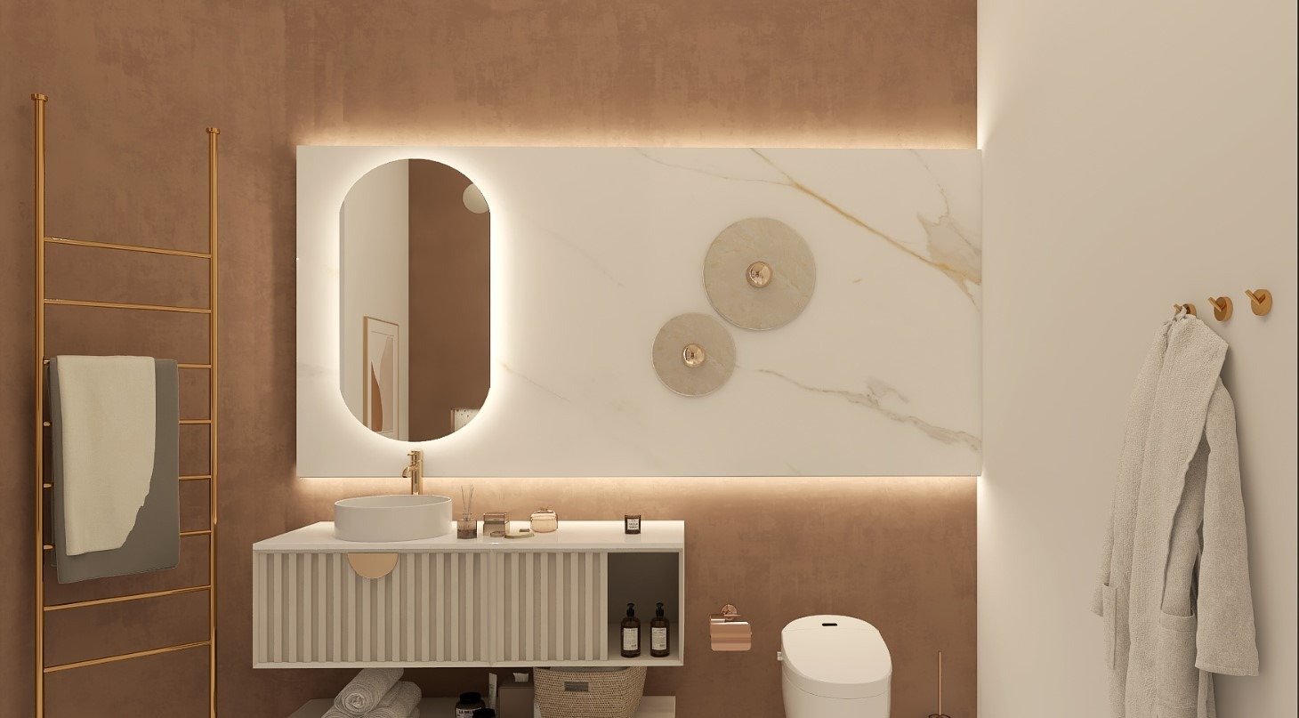 הצבעים נולדו מתוך אהבה לצבע הזהב בשילוב העץ על מנת להכניס חמימות לדירה.