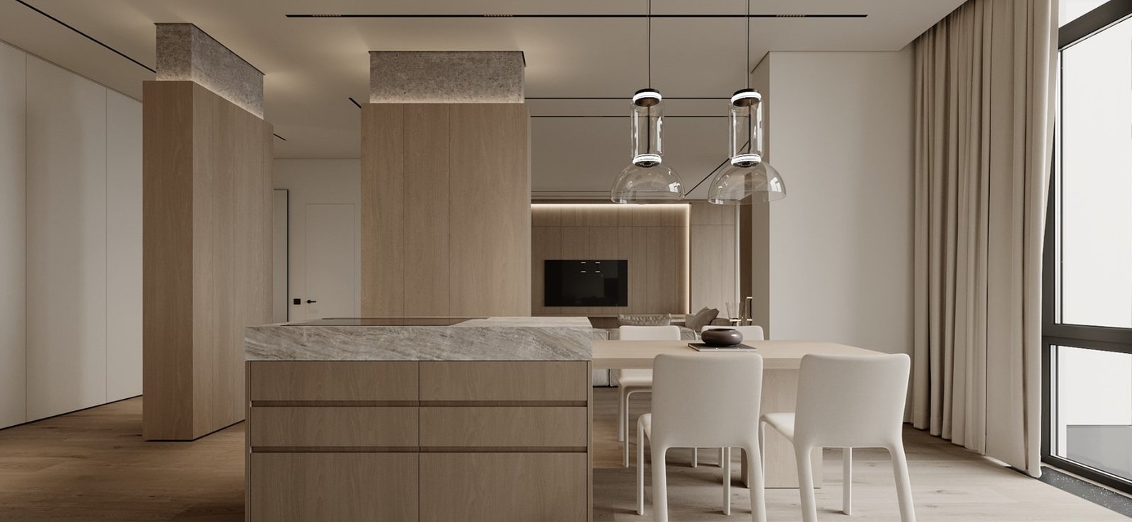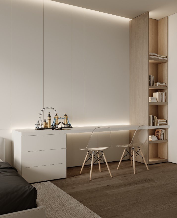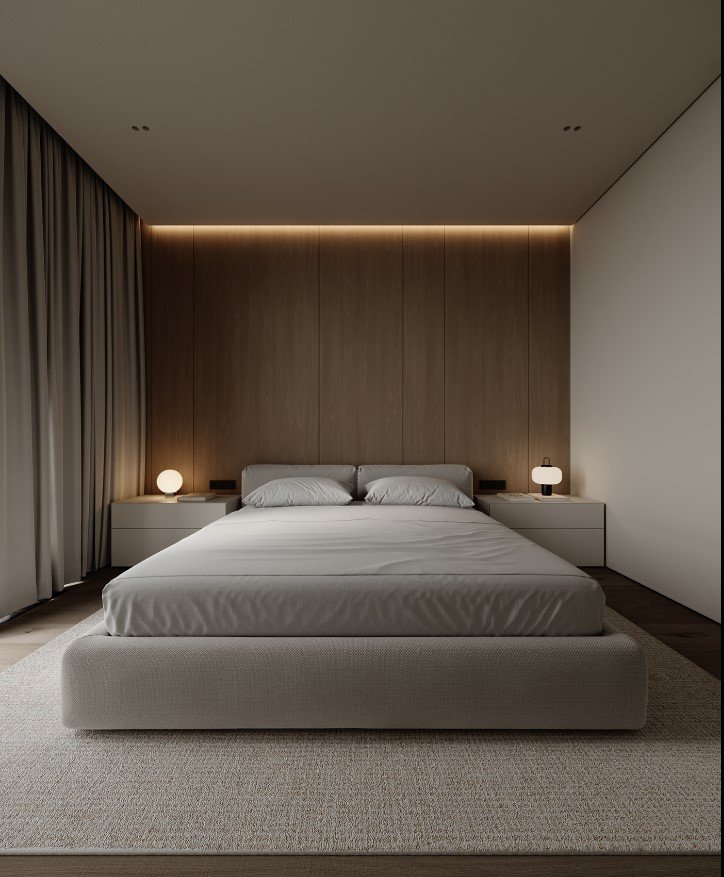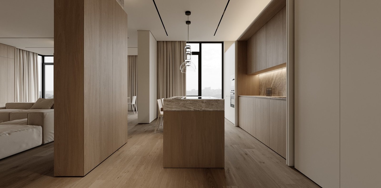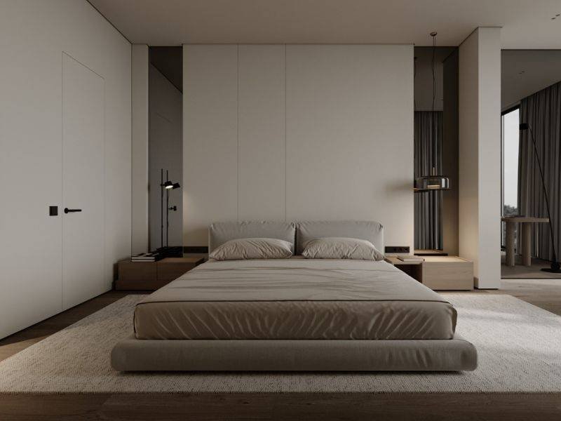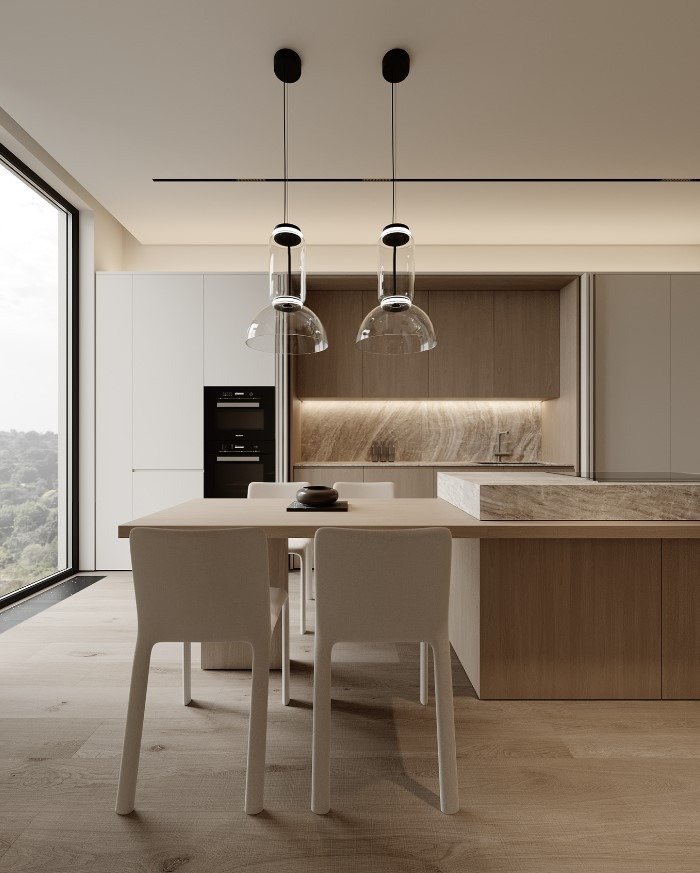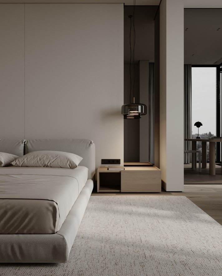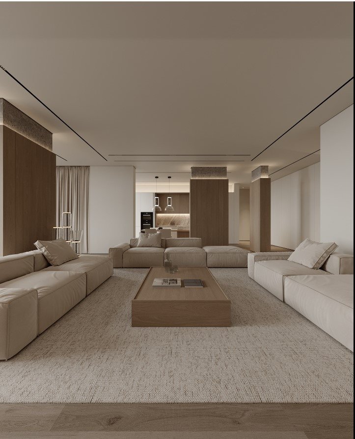 גופי התאורה נסתרים בדירה ליצירת מראה מינימלי.