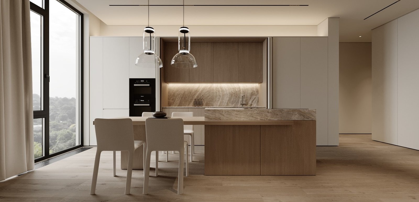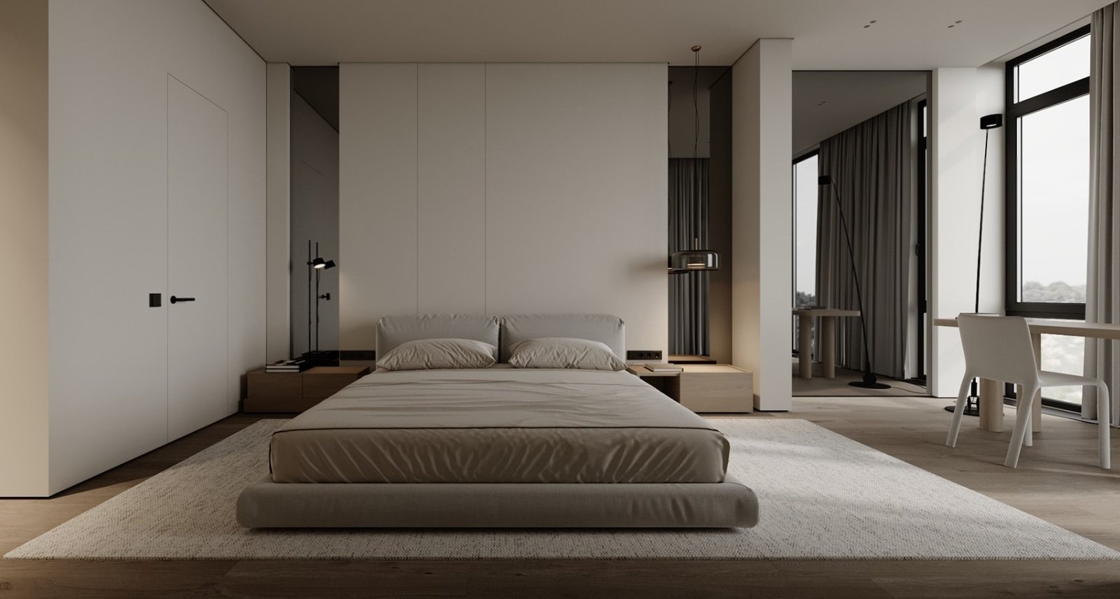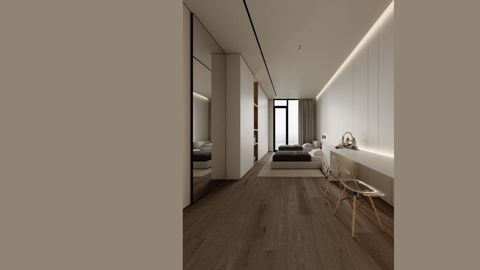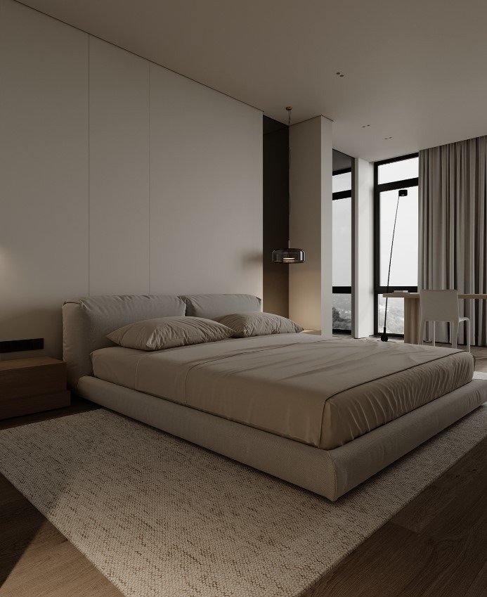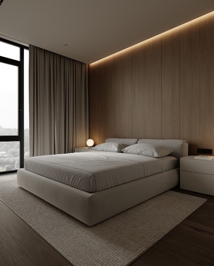 גופי התאורה נסתרים בדירה ליצירת מראה מינימלי.