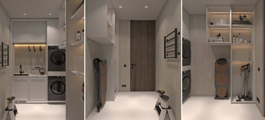 נעשתה הנמכת תקרה על מנת ליצור תאורה שקועה מינימליסטית.